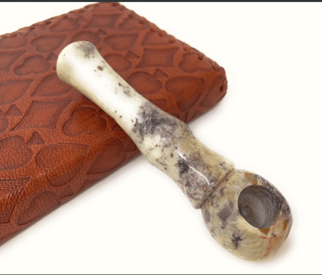 Authentic Design: Individually Handmade and Carved Stone Pipe with unique, natural patterns and marbling.